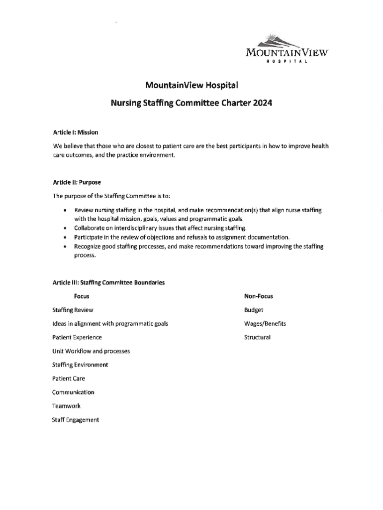 Hospitals are required to not only maintain certain staffing levels but also to document their compliance. The charter provides a structured approach to meet these obligations, detailing how staffing decisions are made and evaluated. This transparency is vital in demonstrating accountability to regulatory bodies and stakeholders.