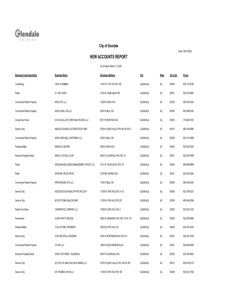 Get the free New Accounts Report