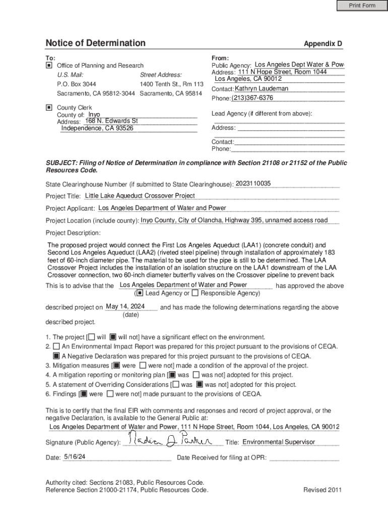 Completing the Notice of Determination Form requires careful attention to detail and adherence to specific guidelines. Here is a step-by-step guide to ensure that the form is filled out accurately and efficiently.