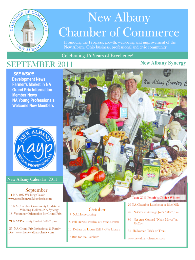 New Albany Chamber of Commerce Promoting the Progress, growth, wellbeing and improvement of the New Albany, Ohio business, professional and civic community. Celebrating 15 Years of Excellence! SEPTEMBER
