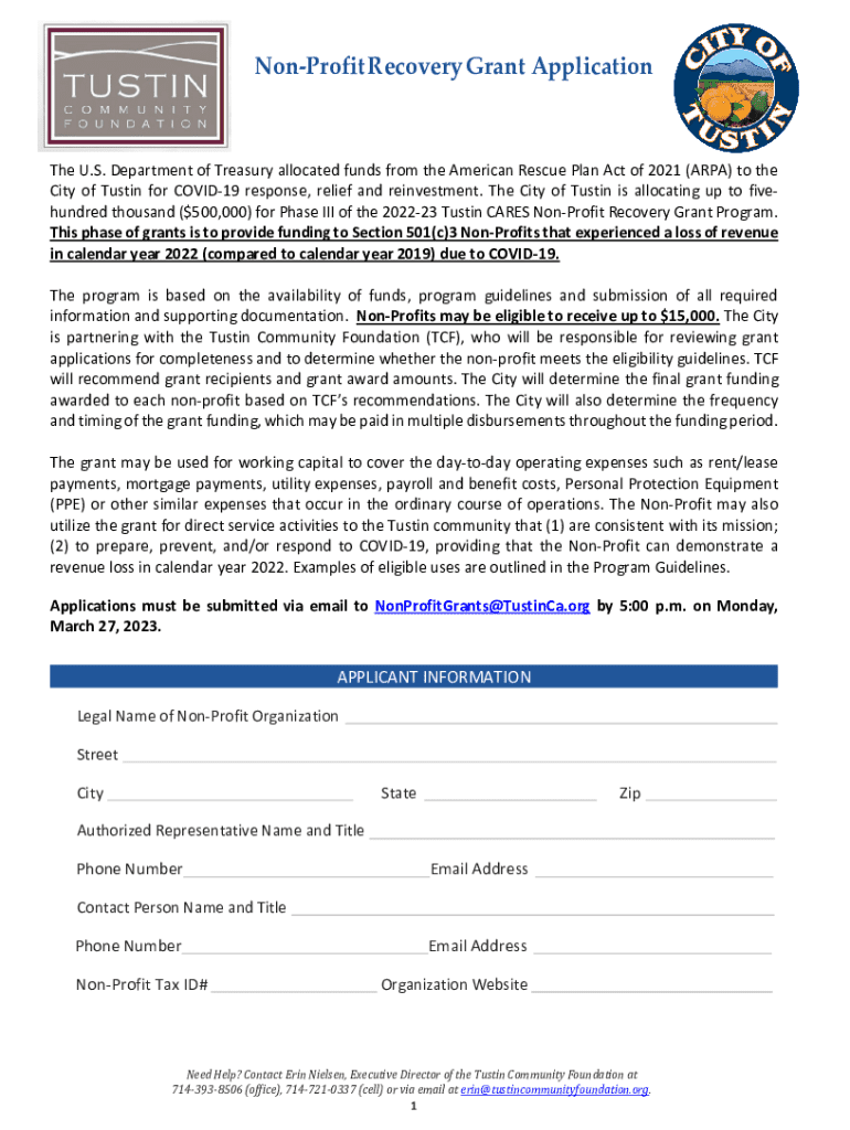 Get the free Non-profit Recovery Grant Application
