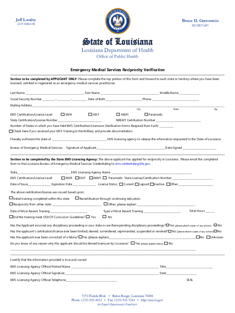Get the free Emergency Medical Services Reciprocity Verification