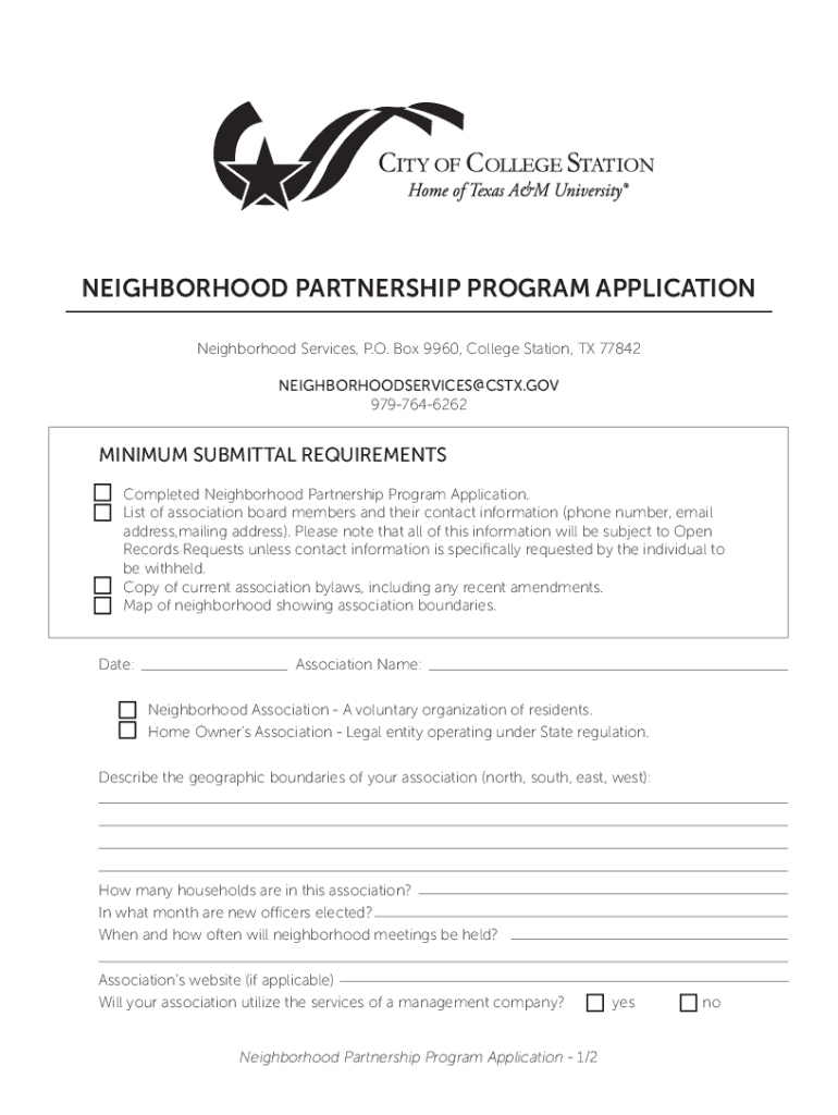 Get the free Neighborhood Partnership Program Application