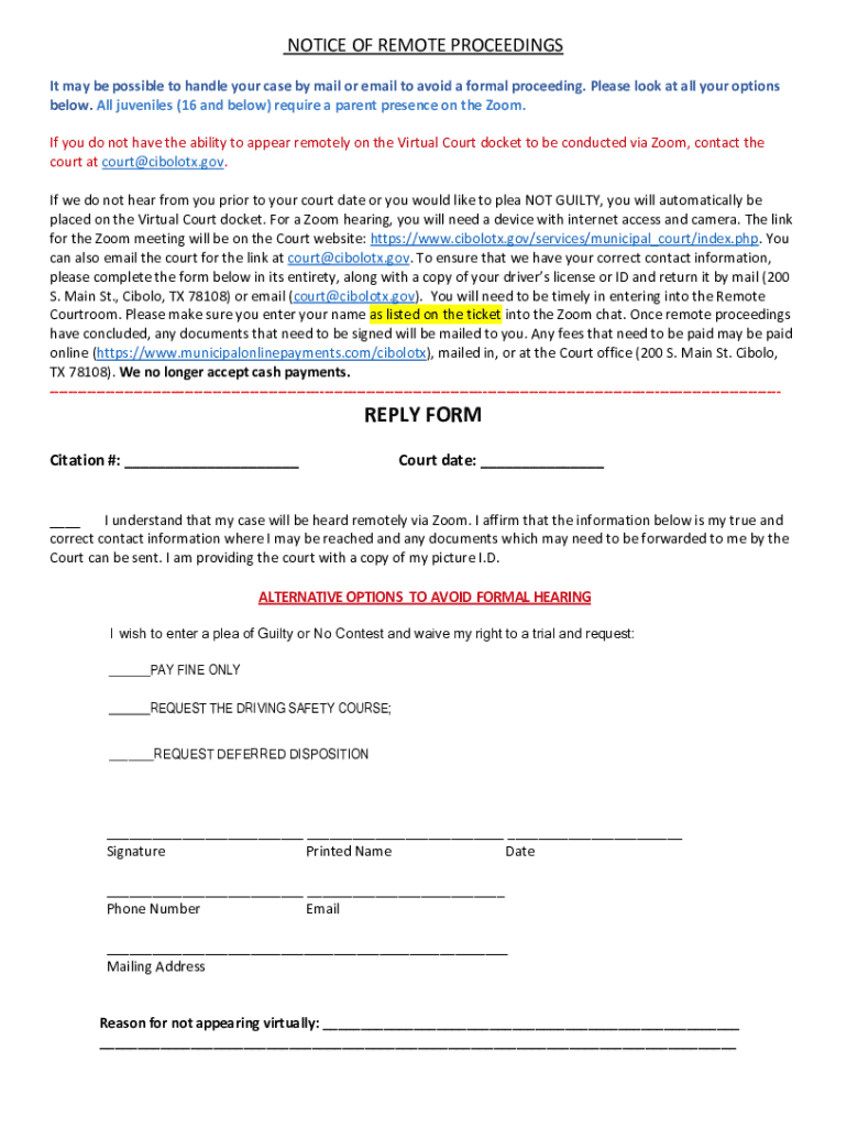 Get the free Notice of Remote Proceedings