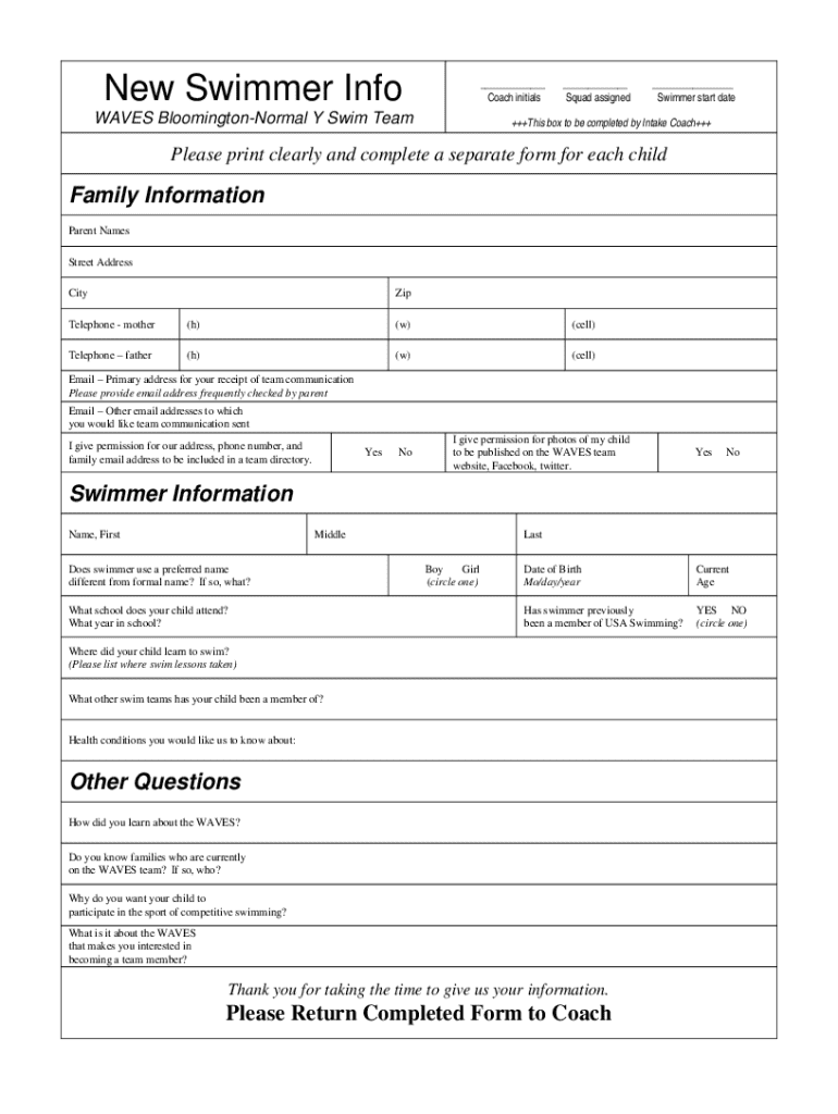 The new swimmer info form sparks various concerns among parents and swimmers alike. Key areas of confusion typically revolve around privacy, data security, and submission procedures. Ensuring clarity on these issues can alleviate stress when approaching this essential document.