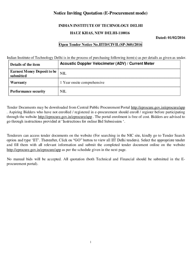 Get the free Notice Inviting Quotation