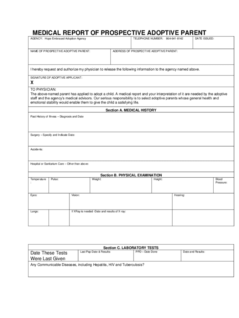 Get the free Medical Report of Prospective Adoptive Parent