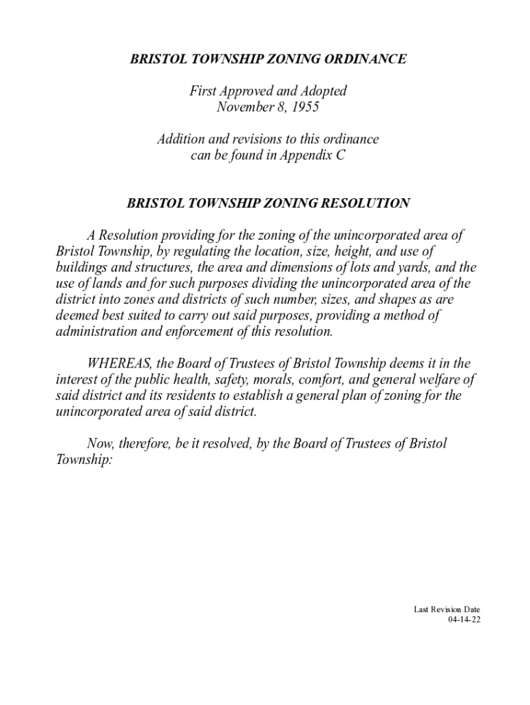 Get the free Bristol Township Zoning Ordinance