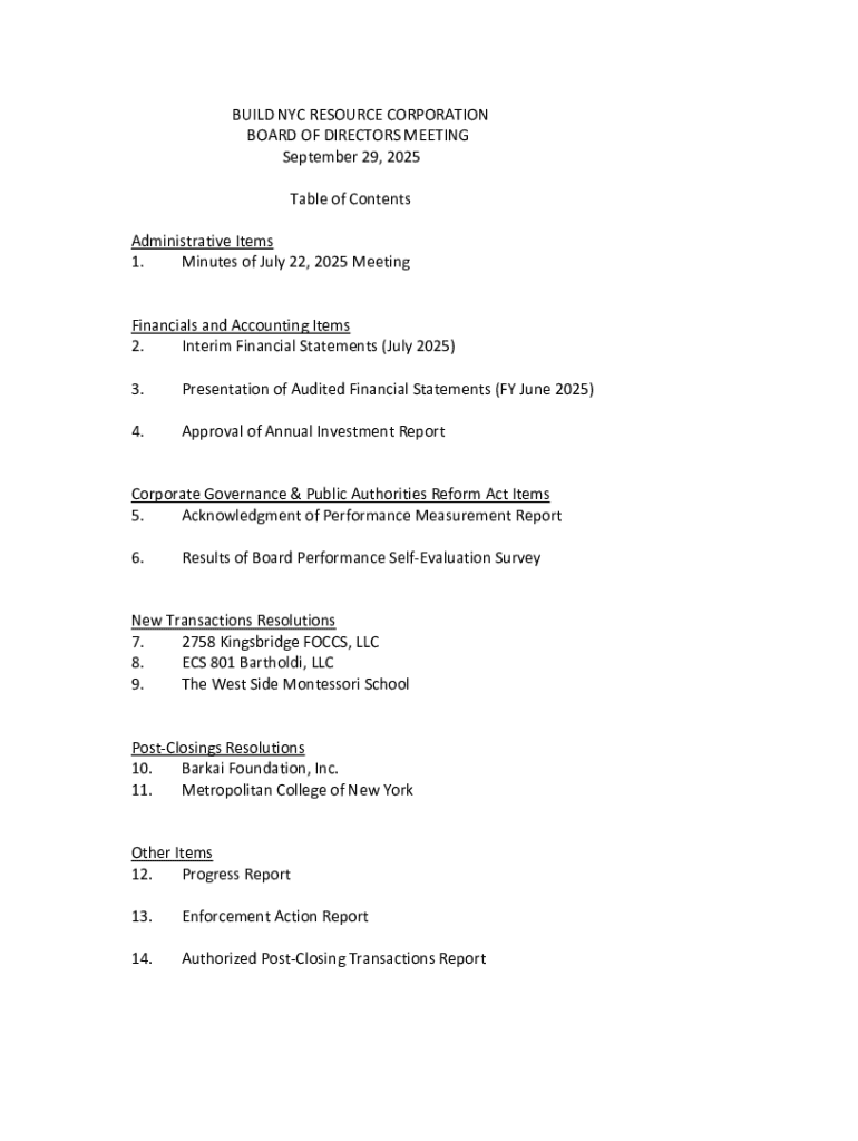 Get the free Build Nyc Resource Corporation Board of Directors Meeting