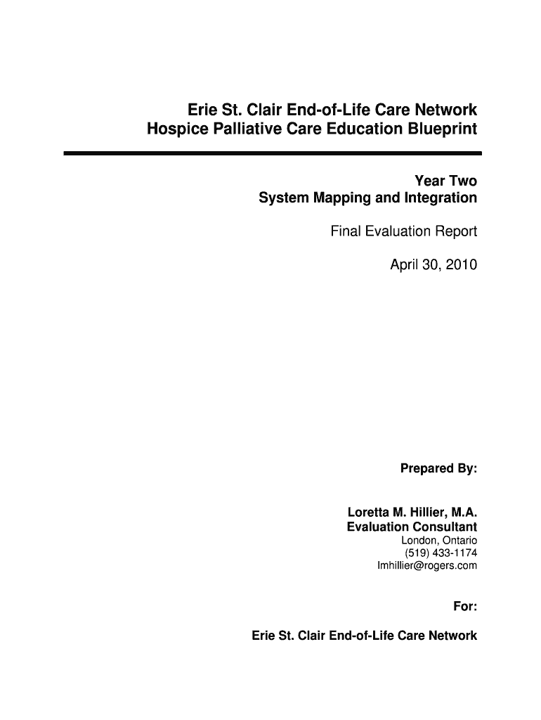Erie St. Clair Endocrine Care Network Hospice Palliative Care Education Blueprint Year Two System Mapping and Integration Final Evaluation Report April 30, 2010, Prepared By: Loretta M. Hillier, M.A.