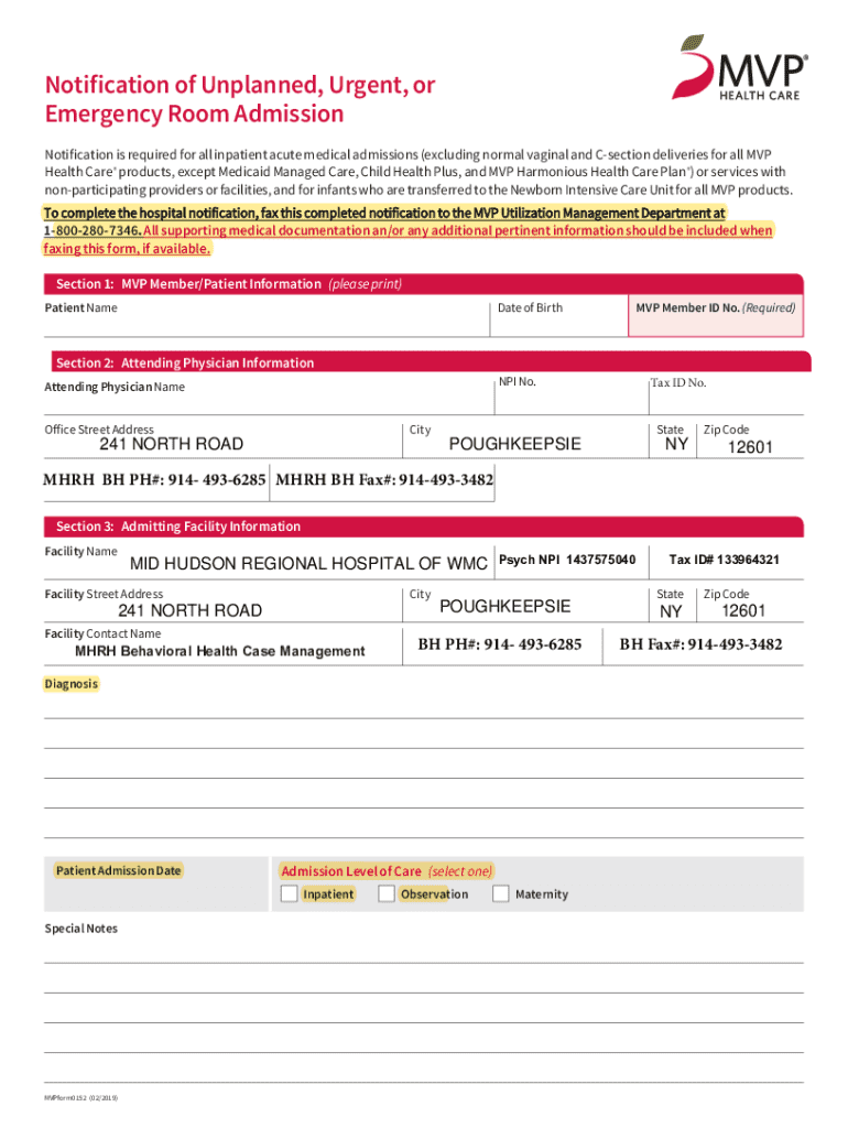 Get the free Notification of Unplanned, Urgent, or Emergency Room Admission