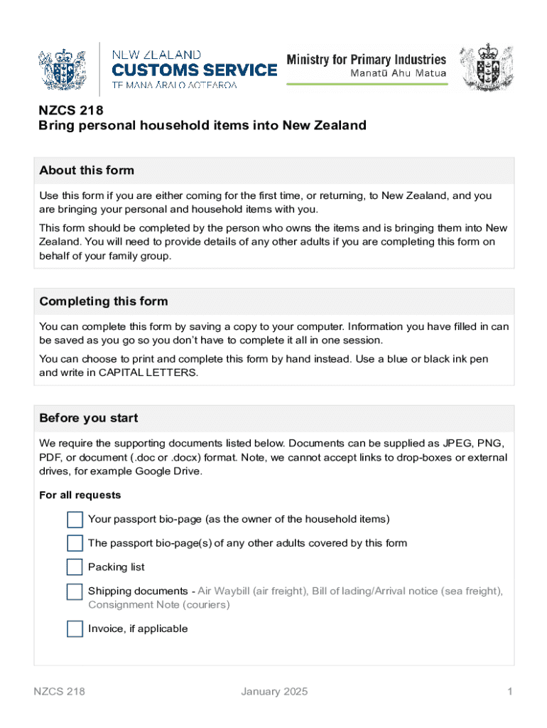 The importance of the NZCS 218 form cannot be overstated. It streamlines the customs process for travelers and helps mitigate delays at borders, allowing for a smoother transition into the country.