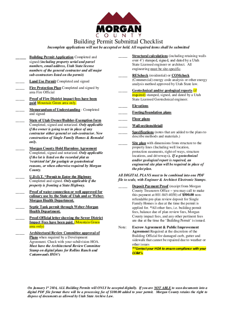 Get the free Building Permit Submittal Checklist