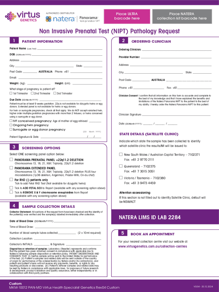 Get the free Non Invasive Prenatal Test (nipt) Pathology Request