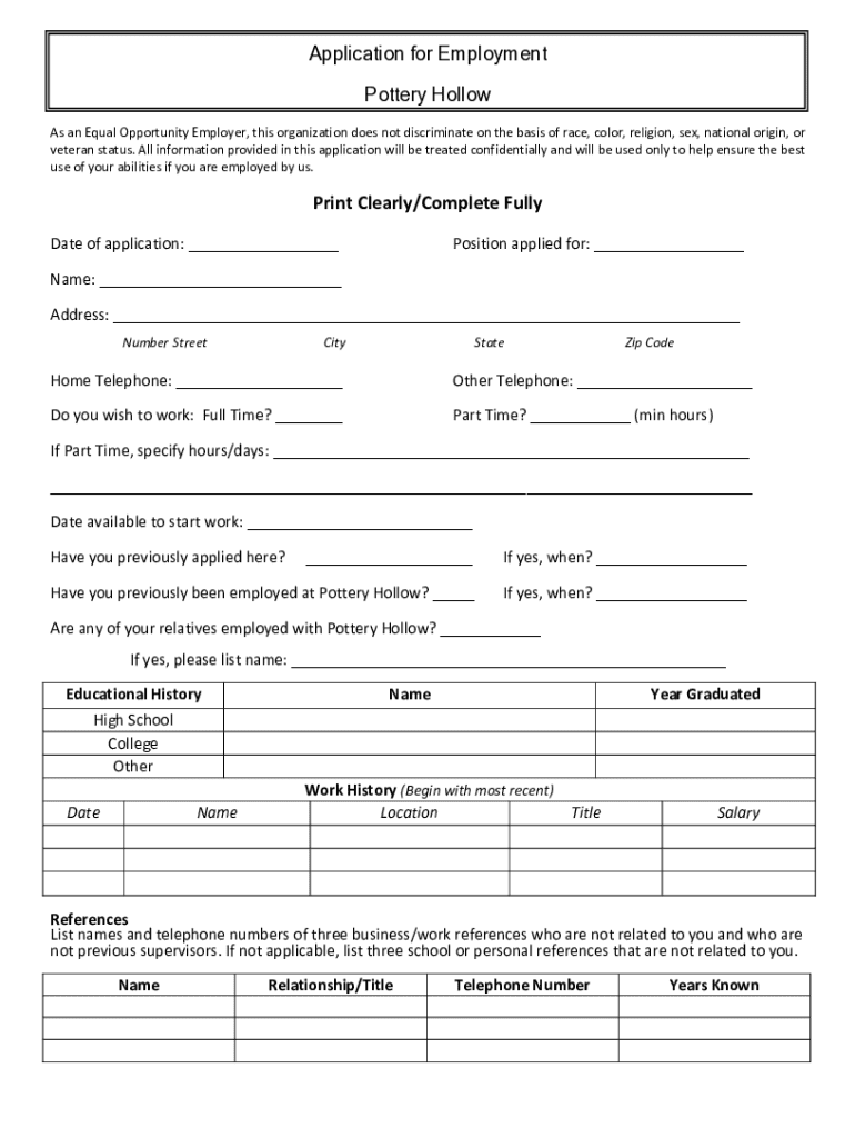 Get the free Application for Employment