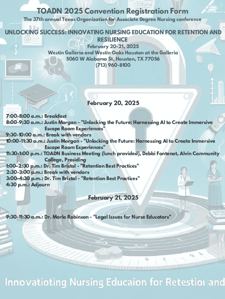 Attendees of the Toadn 2025 Convention can look forward to an exciting agenda filled with sessions, exhibits, and networking events. The convention will feature keynote addresses from industry leaders, interactive workshops, and panel discussions, ensuring a well-rounded experience. Participants are encouraged to check the official convention website for a detailed agenda and to plan their schedules accordingly.