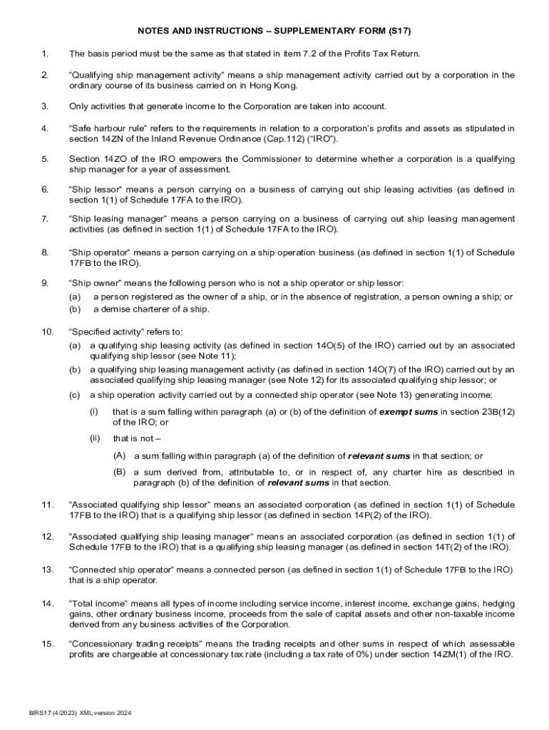 Get the free Notes and Instructions – Supplementary Form (s17)