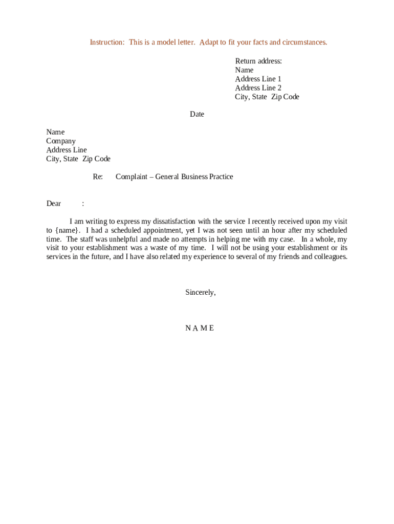 Get the free Business Letter Sample Of Complaint Template
