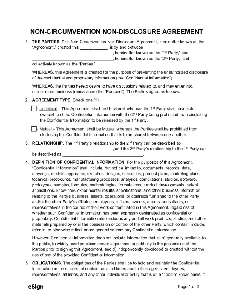 Get the free Non-circumvention Non-disclosure Agreement