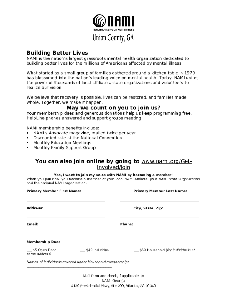 Instructions for the form NAMI Southeast Iowa Membership