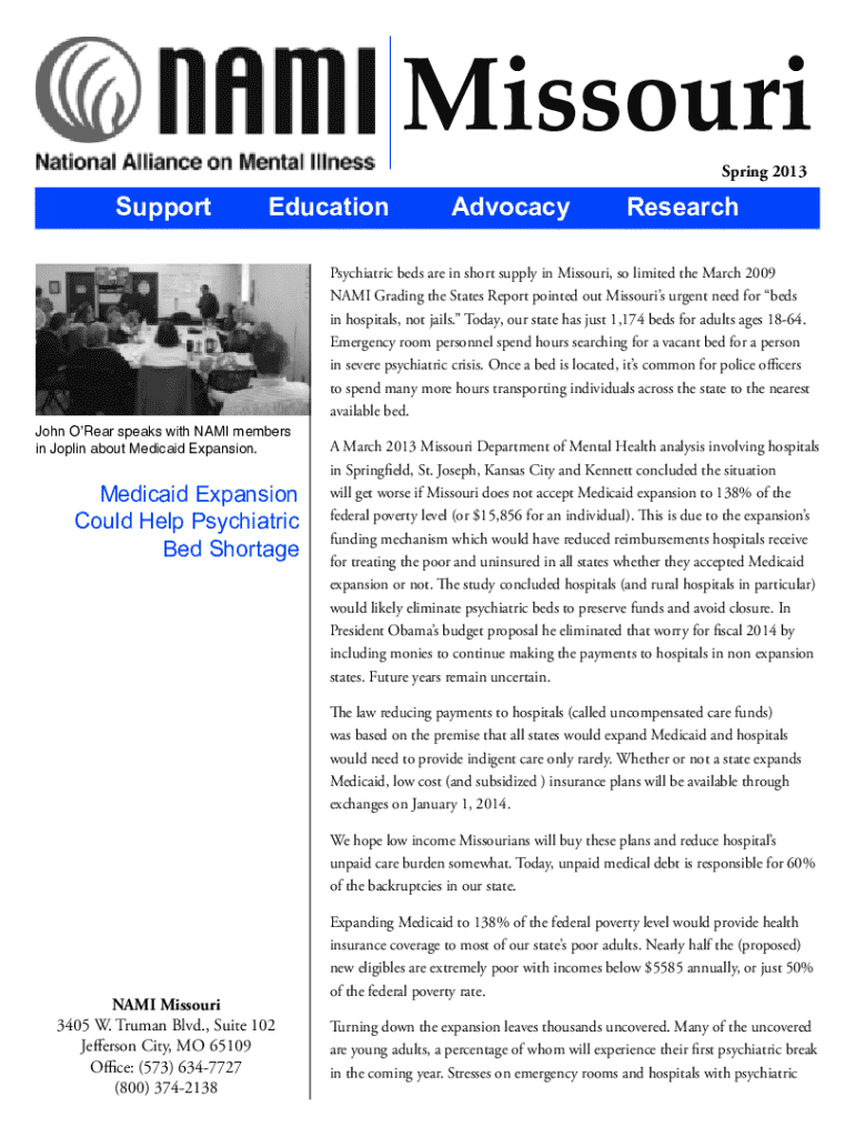 Moreover, the form plays a vital role in promoting awareness and education within the community. By engaging with the NAMI Missouri Spring 2013 form, individuals contribute to a collective effort aimed at educating the populace about mental health issues, thereby reducing stigma and fostering understanding. This collaboration ultimately enhances the community's mental health services.
