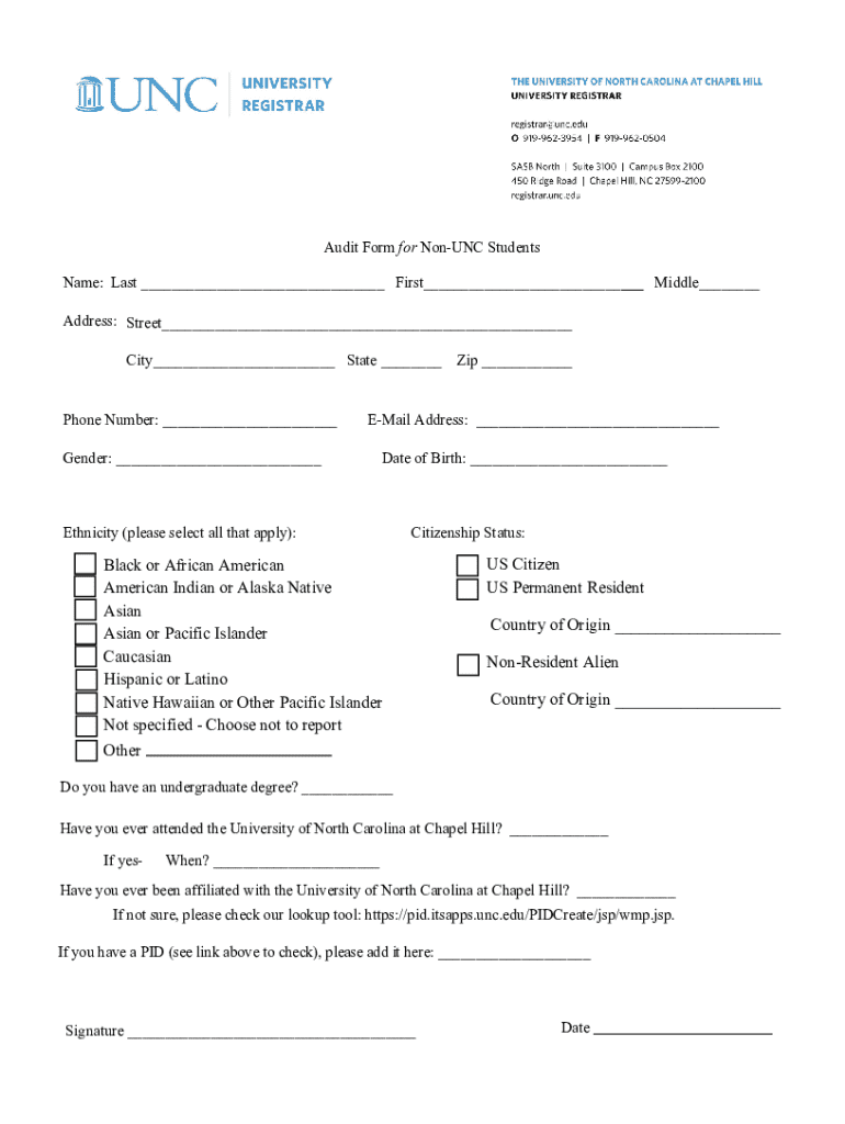 Get the free Audit Form for Non-unc Students - registrar unc