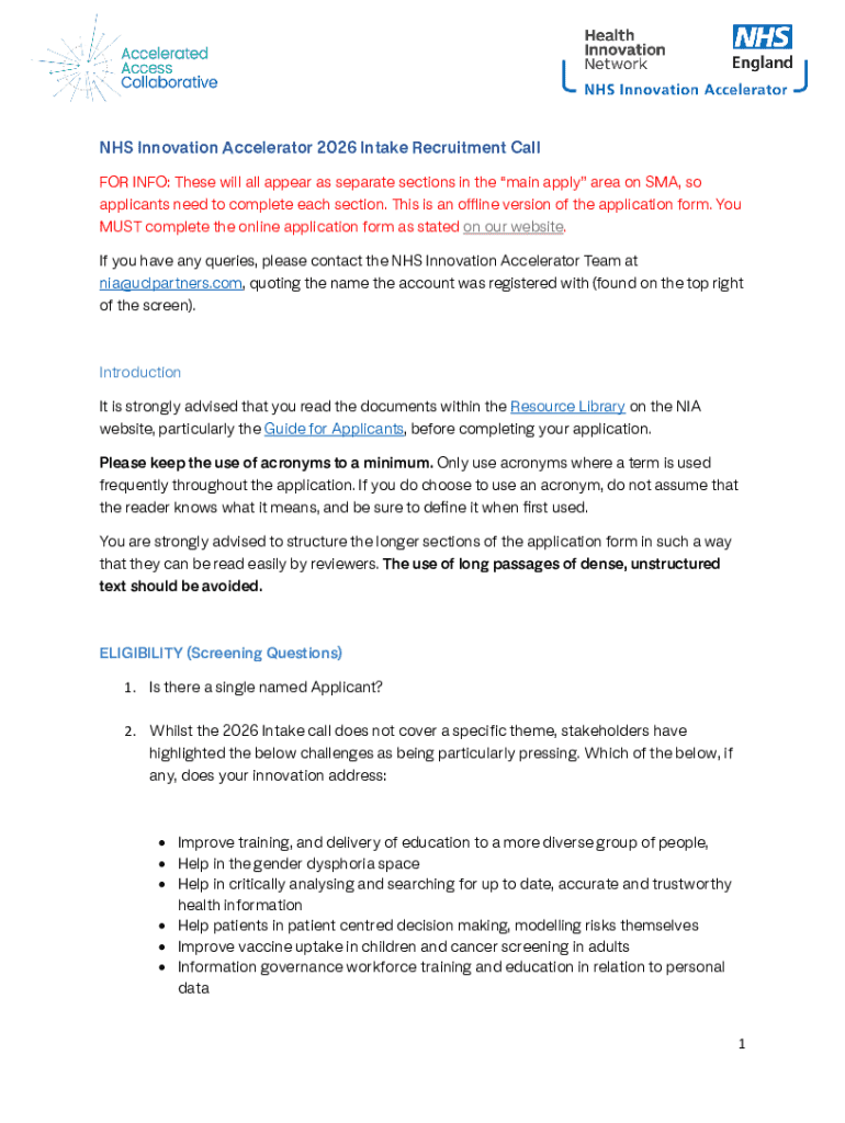 Get the free Nhs Innovation Accelerator 2026 Intake Recruitment Call