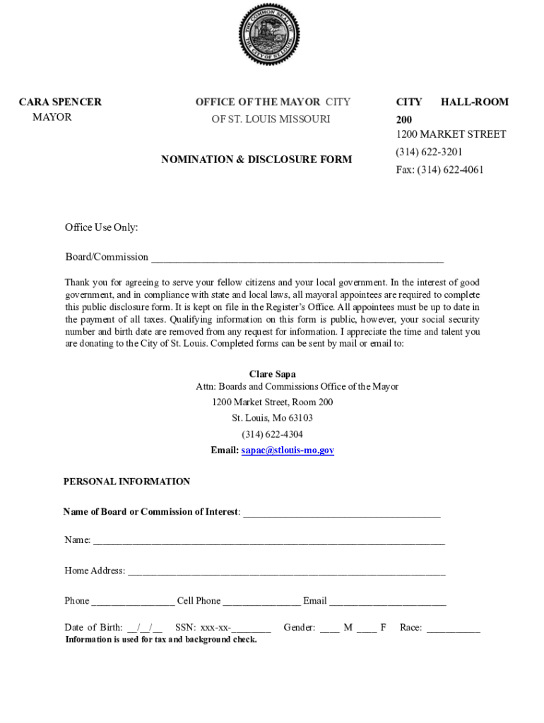 The importance of the nomination disclosure form cannot be overstated. It not only aids in validating the legitimacy of the nomination but also helps prevent any inappropriate biases or undue influences from affecting the selection process. This transparency is essential for maintaining public trust in the nomination process, whether it be for government officials, award recipients, or any other recognized positions.
