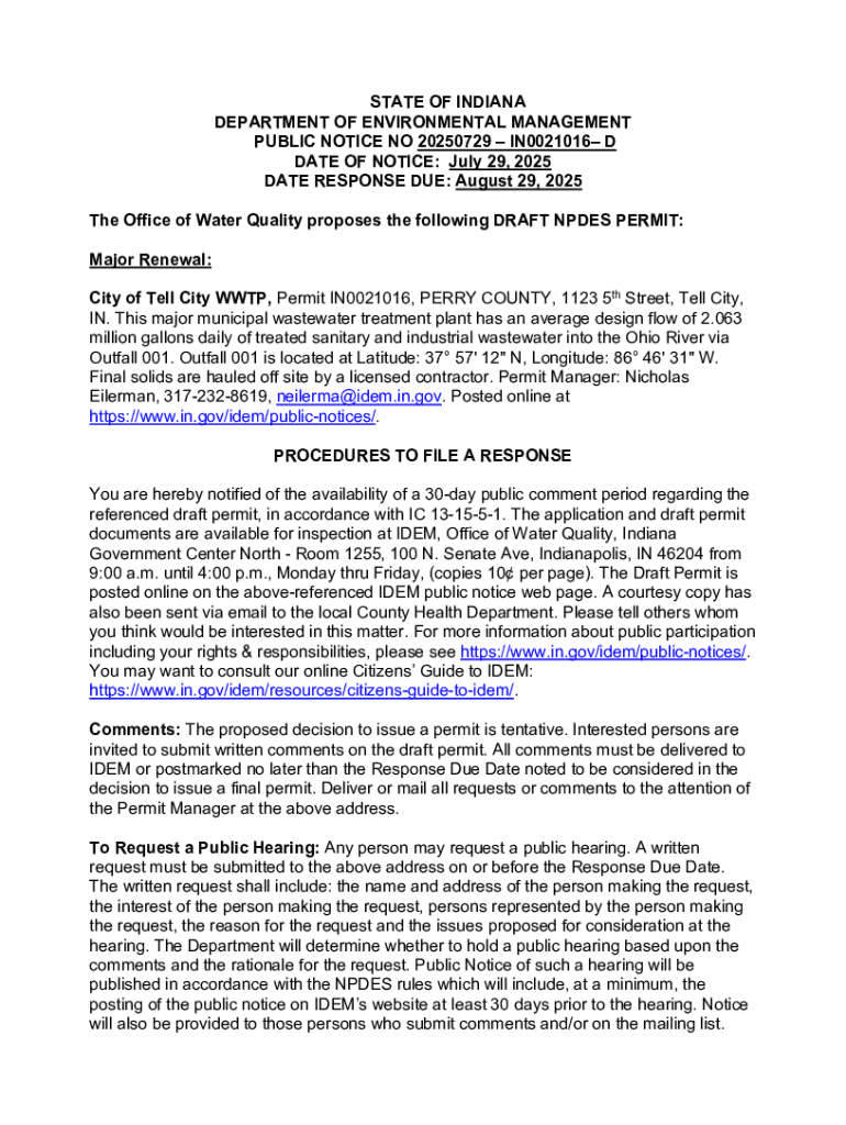For assistance regarding the NPDES Permit No IN0021016 or other related inquiries, the following resources are invaluable.