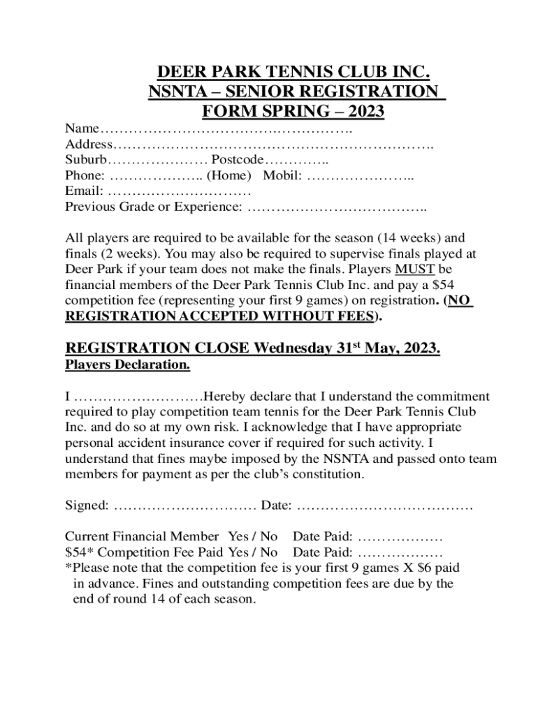 The nsnta Senior Registration Form is designed specifically for senior competitors looking to participate in various sporting events managed by the National Senior Tennis Association (NSNTA). This form serves as a crucial gateway, allowing players aged 50 and above to officially enter competitions, ensuring proper organizational structure during events.