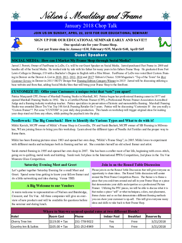 Get the free Nelson's Moulding and Frame Educational Seminar