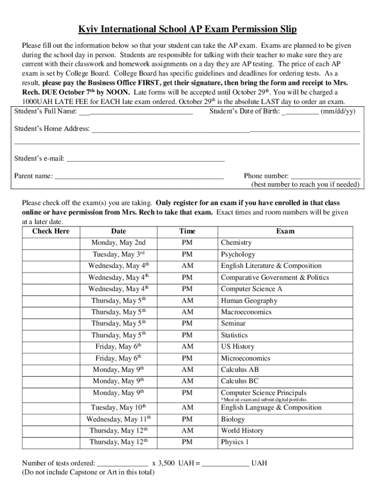 AP Exam Permission Slip Form: A Comprehensive Guide