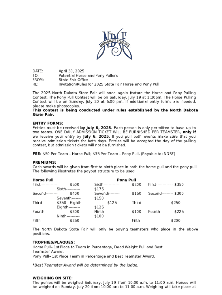 Different types of forms are utilized within the North Dakota State Fair, each tailored to specific needs. For example, there are specific forms for livestock entries, vendor applications, and general participation. Understanding which form to use is the first step in ensuring a smooth entry process.