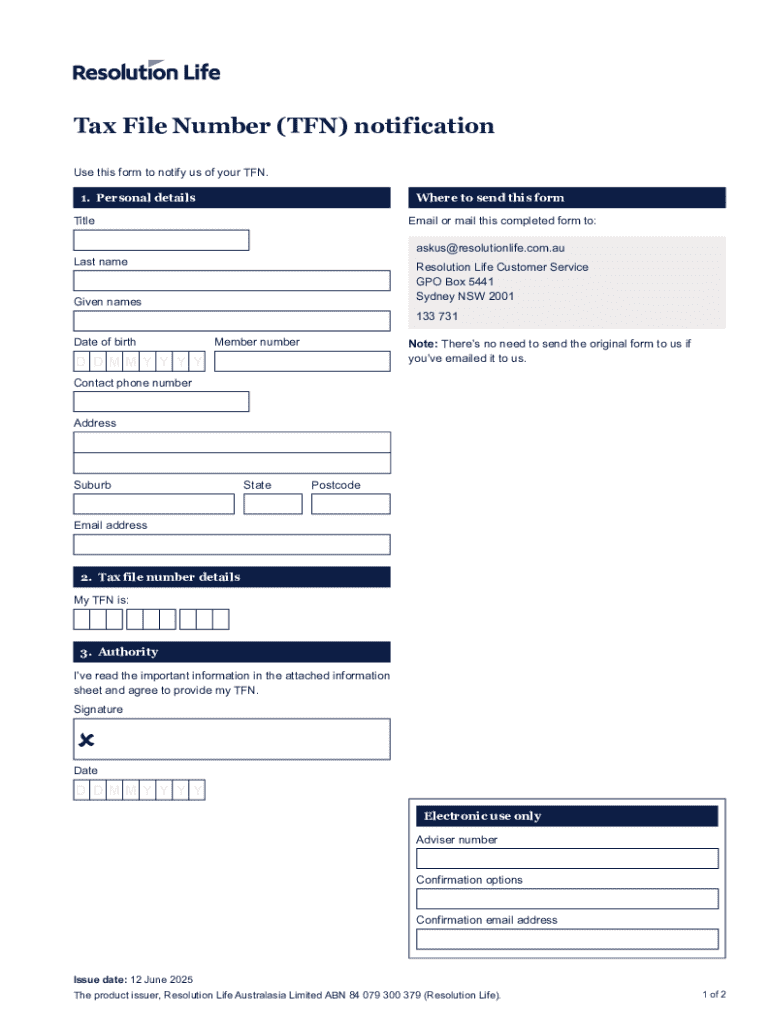 Completing the TFN form involves filling in several sections, including personal details and residency questions. Pay special attention to your answers regarding residency status, as it influences tax liabilities and obligations. For businesses, additional information about the type of business structure is required. Common pitfalls include errors in personal details and missing out on residency confirmations, which can delay processing.