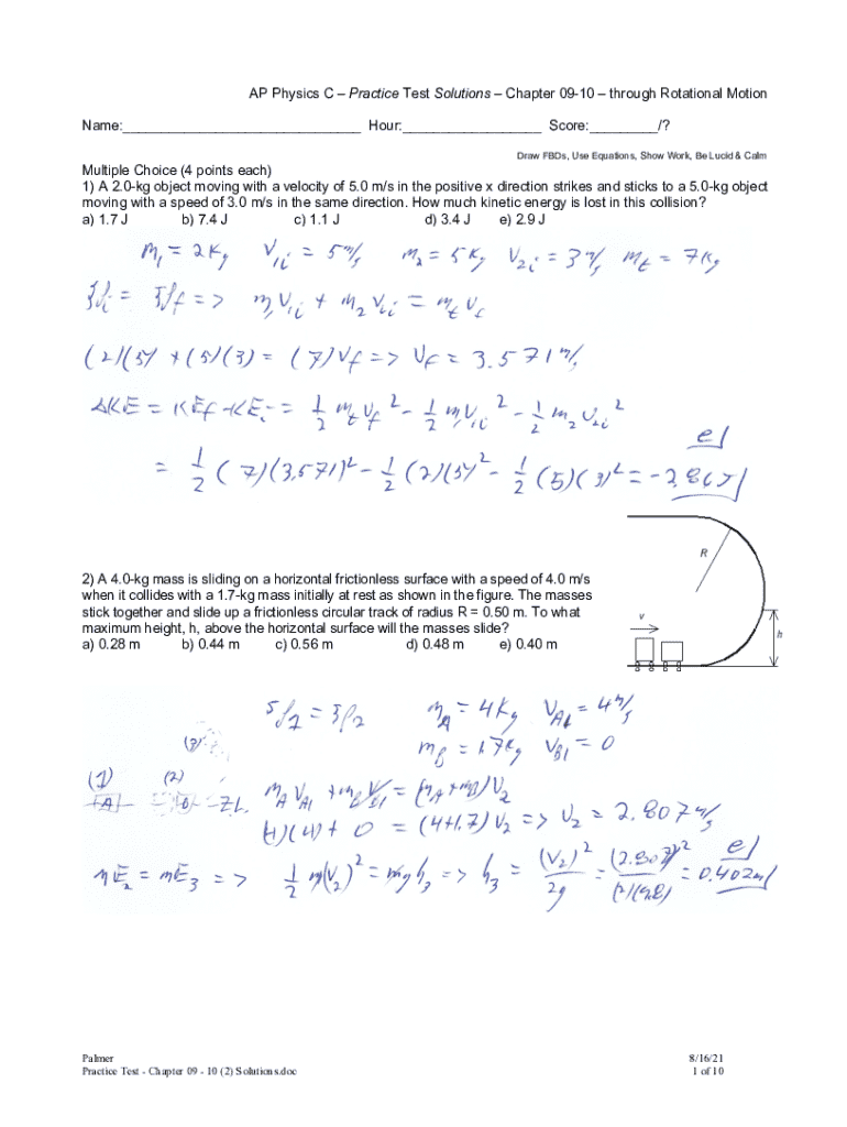 Get the free Ap Physics C – Practice Test Solutions – Chapter 09-10