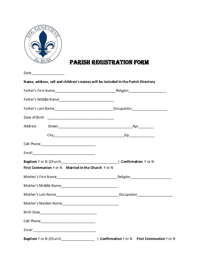 The parish registration form typically comprises several key sections that gather essential information about individuals and families. The personal information section collects basic details such as name, address, and contact information, which are vital for maintaining current records and facilitating communication.