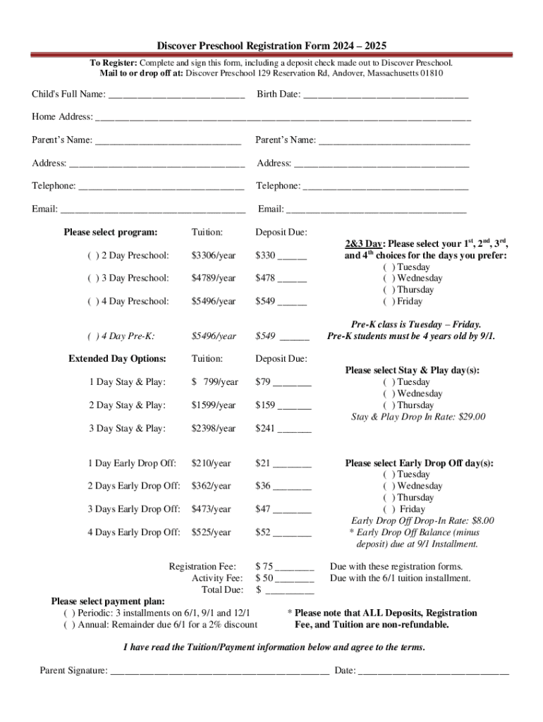 Get the free Discover Preschool Registration Form 2024 – 2025