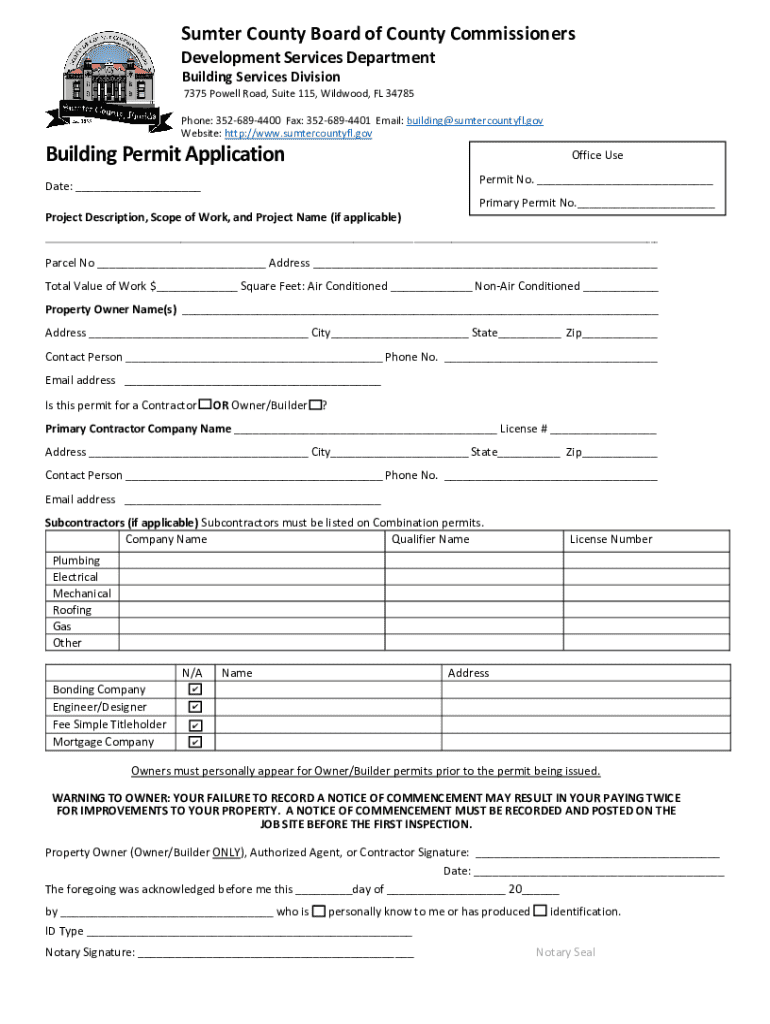 A building permit application form is an official document that property owners must complete to obtain authorization from local authorities before beginning construction. These permits are crucial as they ensure that projects comply with safety codes, zoning laws, and other regulations designed to protect public health and welfare. Without a valid permit, construction work can be subject to fines or required demolition.