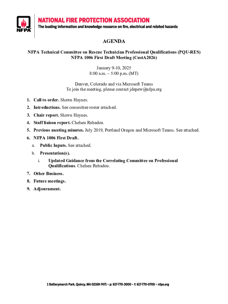 Get the free Nfpa 1006 First Draft Meeting Agenda