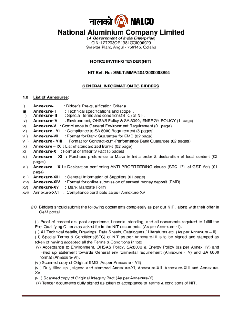 Begin with the title 'Notice Inviting Tender (NIT)'.