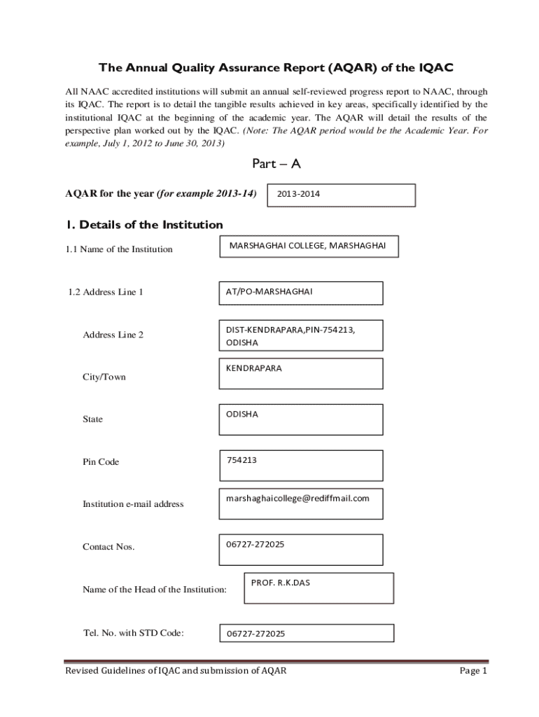 This document is the Annual Quality Assurance Report submitted by the Internal Quality Assurance Cell (IQAC) of Marshaghai College to NAAC, detailing the progress and results achieved in various key