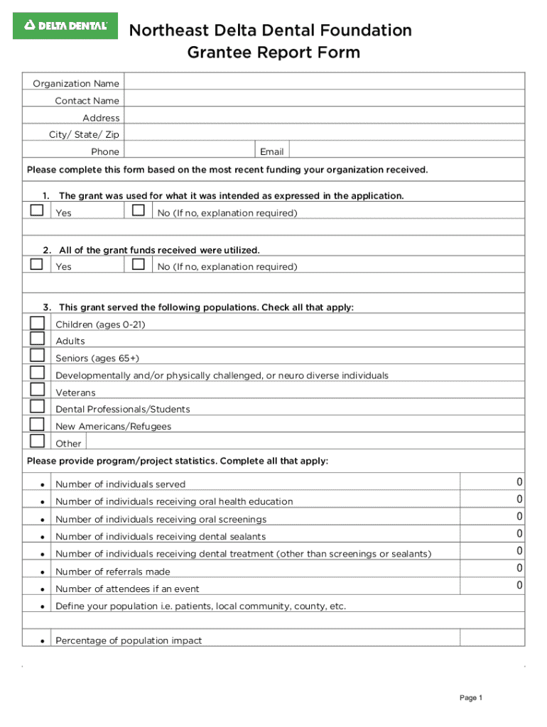 Get the free Northeast Delta Dental Foundation Grantee Report Form