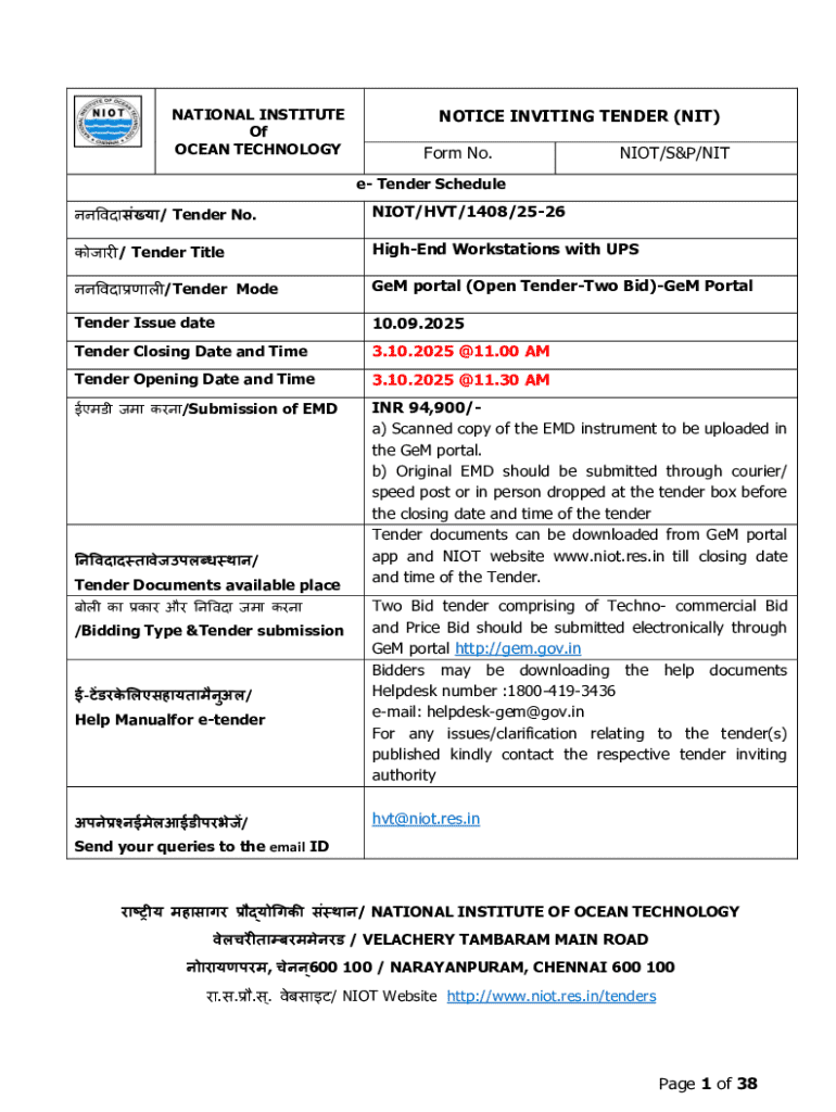 Get the free National Institute of Ocean Technology - Notice Inviting Tender (nit)