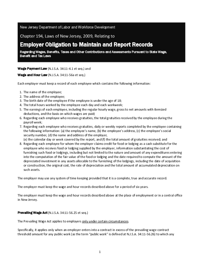 Get the free New Jersey State Labor Laws