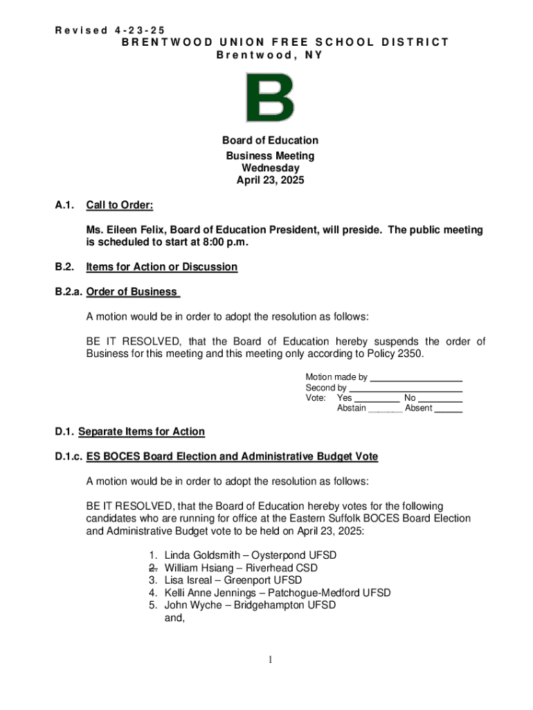 Get the Brentwood Union Free School District Board Meeting Minutes