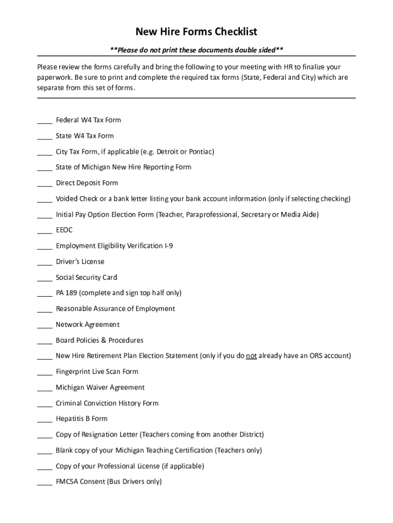 New Hire Forms Checklist is not the form you're looking for?Search for another form here.