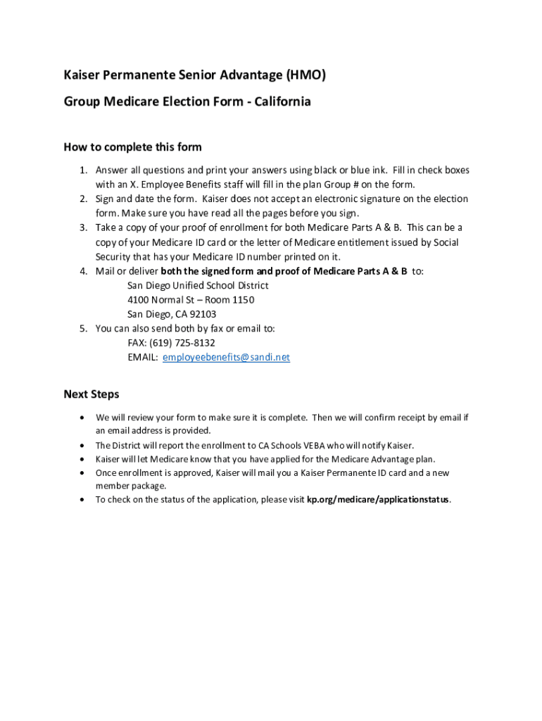 Get the free Kaiser Permanente Senior Advantage (hmo) Group Medicare Election Form - California