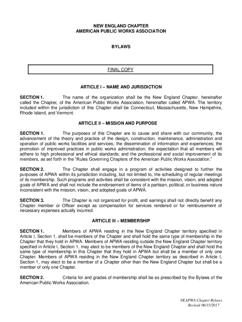 Get the free Neapwa Chapter Bylaws