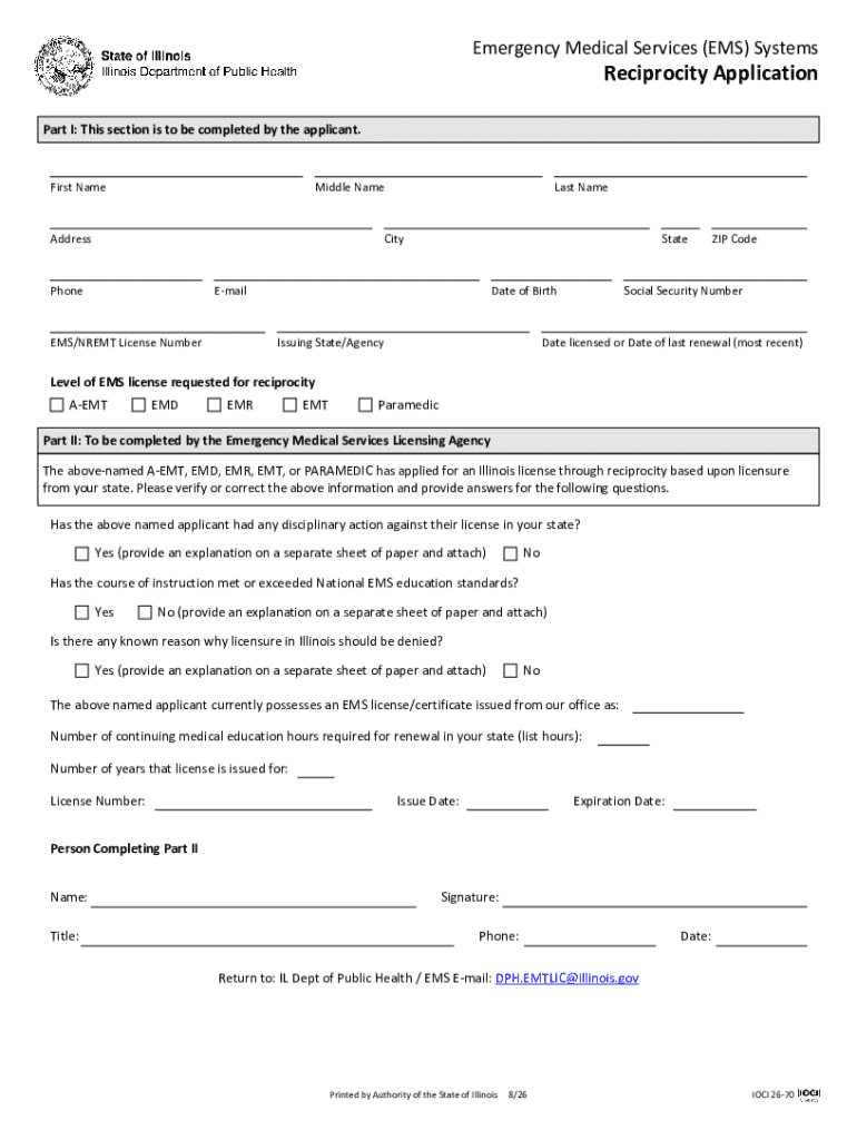 Get the free Emergency Medical Services (ems) Reciprocity Application