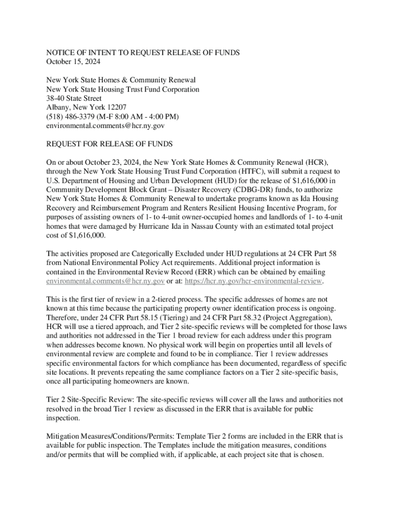Get the free Notice of Intent to Request Release of Funds